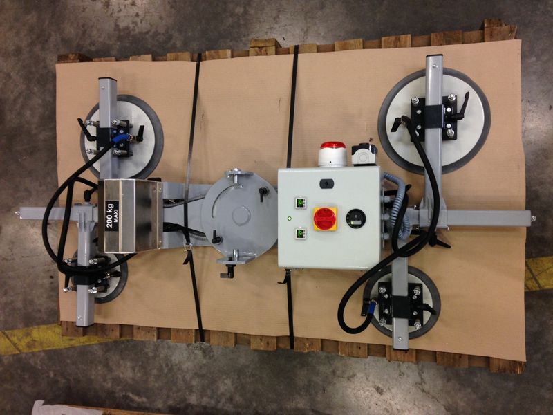 Nous réalisons à la demande votre palonnier à ventouses sur mesure, autonome ou non, en 12V ou 24V. Tous nos palonniers respectent la norme EN 13155. Ils sont équipés de: 1 pompe à vide en 12V ou 24V, 2 circuits de distribution de vide , 2 réservoirs de vide de sécurité , 2 clapets anti-retour, 2 vacuostats à affichage numérique, 1 boîte à bouton filaire embarquée pour la pose et dépose, 1 alarme acoustique et optique en cas de vide inférieur à 65%.