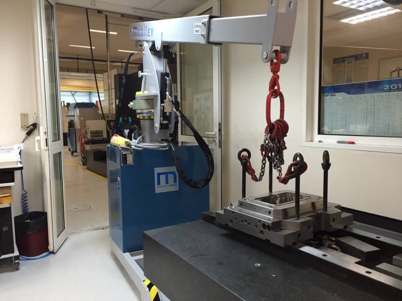 Elle permet de soulever jusqu'à 1250 kg et passe par une porte piètone de 1m90 x 0m90. Cette mini grue peut être équipée d'une tourelle hydraulique 18° permettant d'ajuster précisément la position latérale du crochet sans déplacer la mini-grue , et d'un mât vertical hydraulique d'une course de 600 mm garantissant un déplacement purement vertical du crochet.